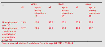 The Bell and Blanchflower data throw light also on the incidence of unemployment and underemployment by ethnicity. Taken as a whole, the figures paint an